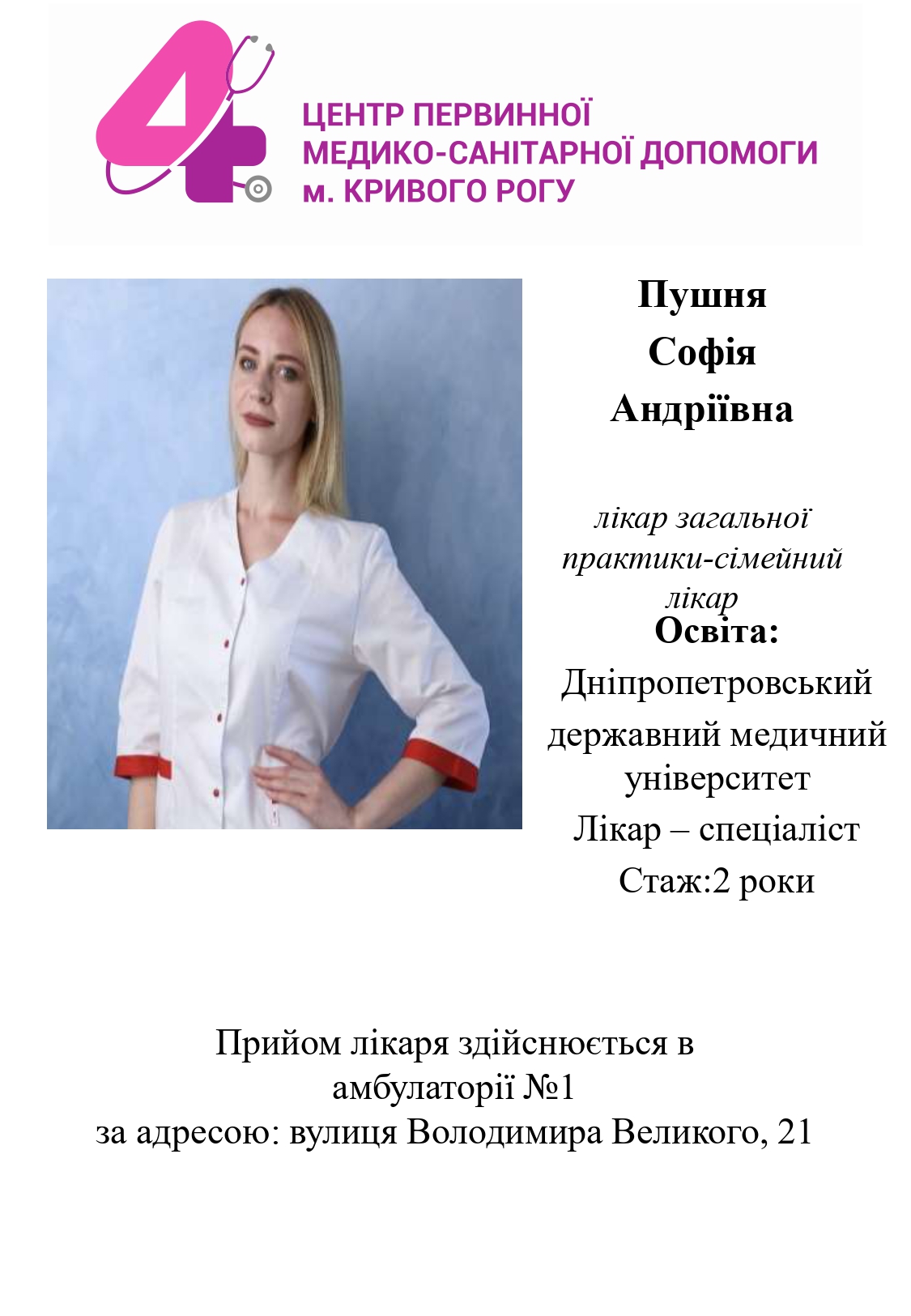Пушня Софія АндріївнаЛікар загальної практики - сімейний лікар
